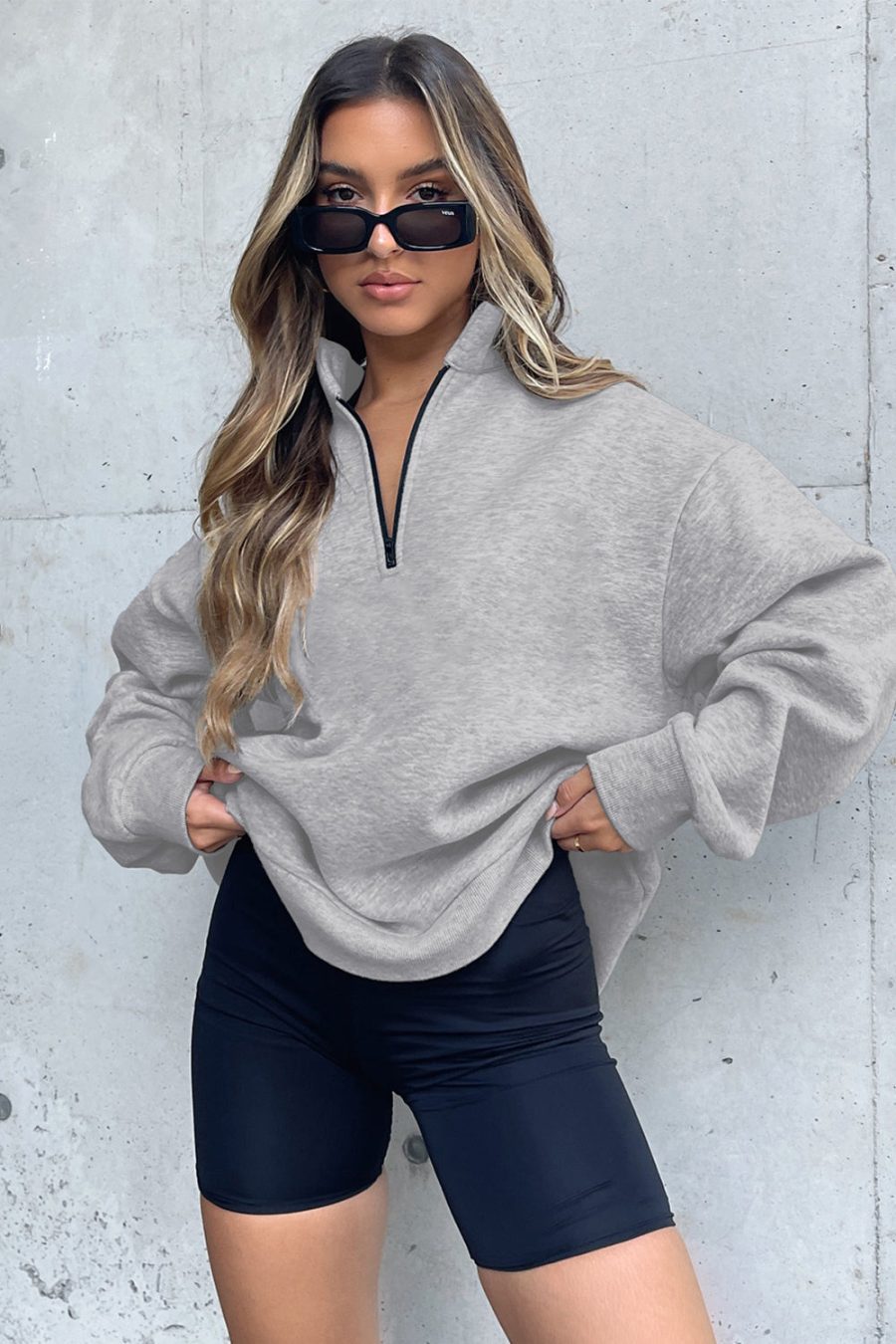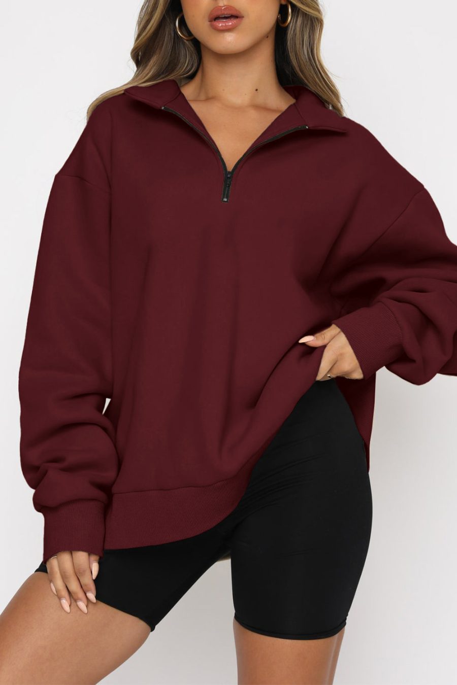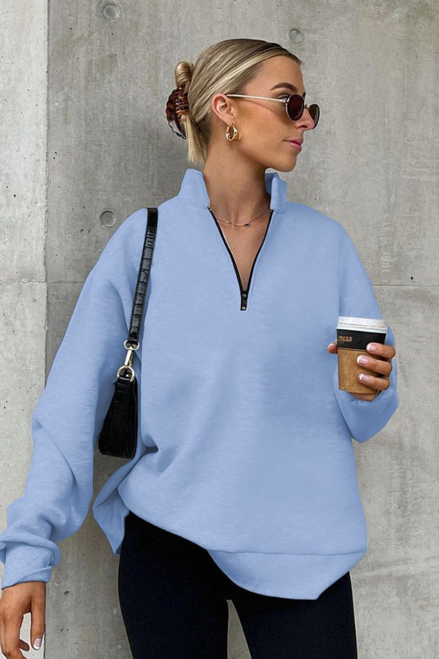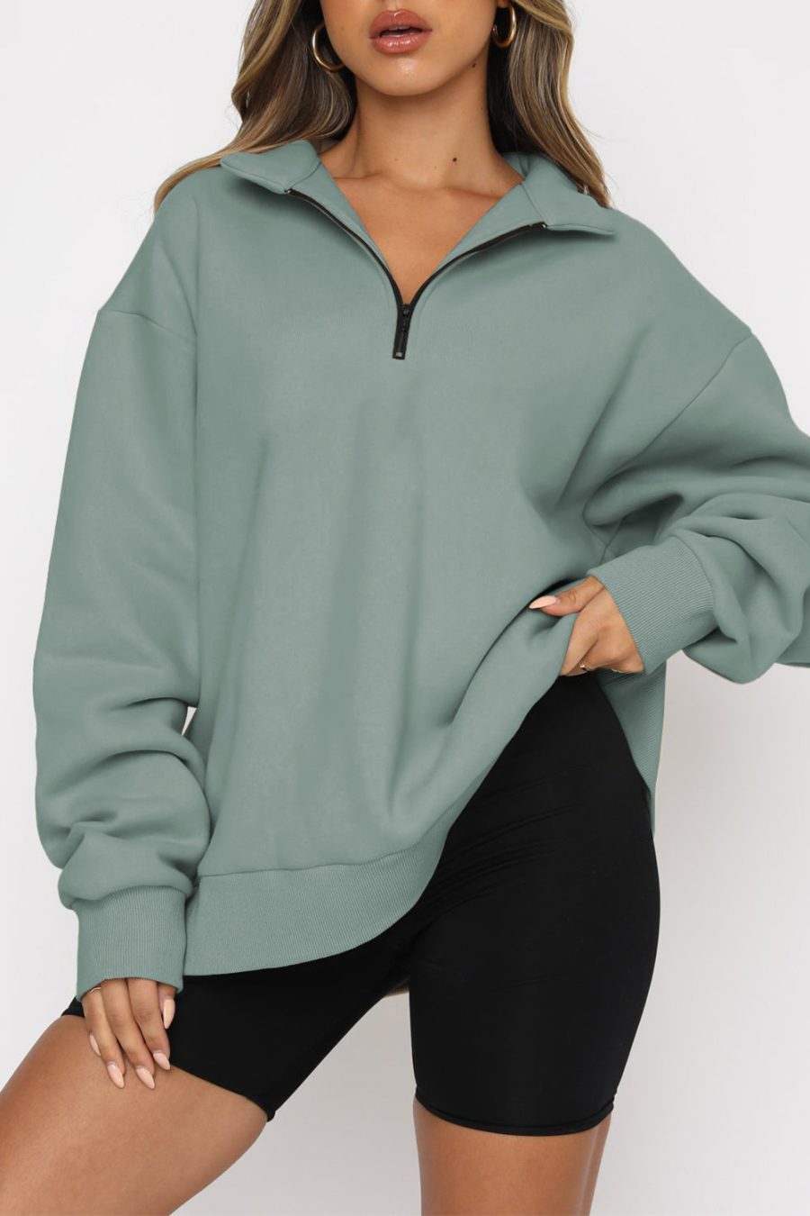 Black Quarter Zip Up Oversized Sweatshirt quantity