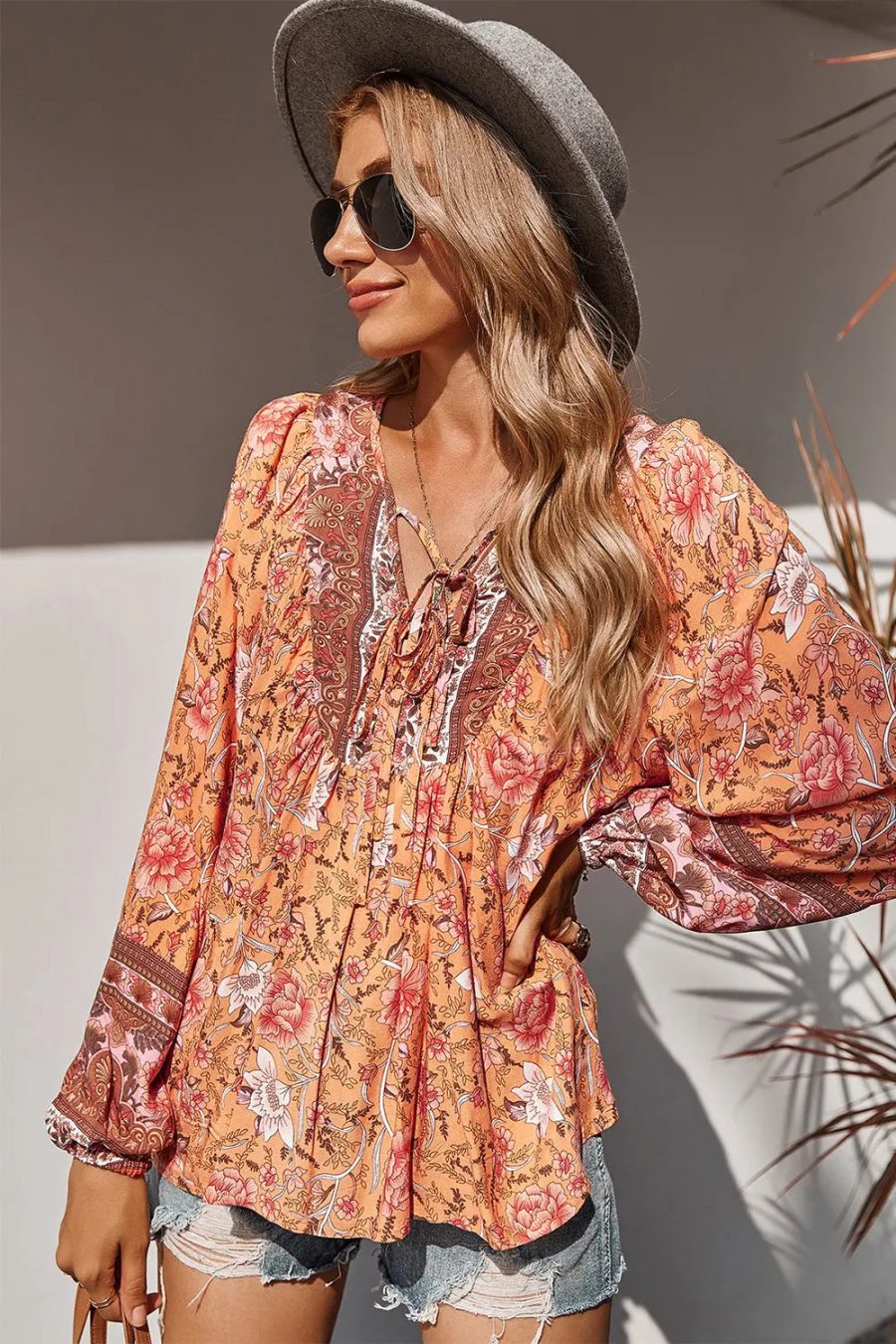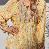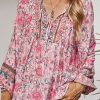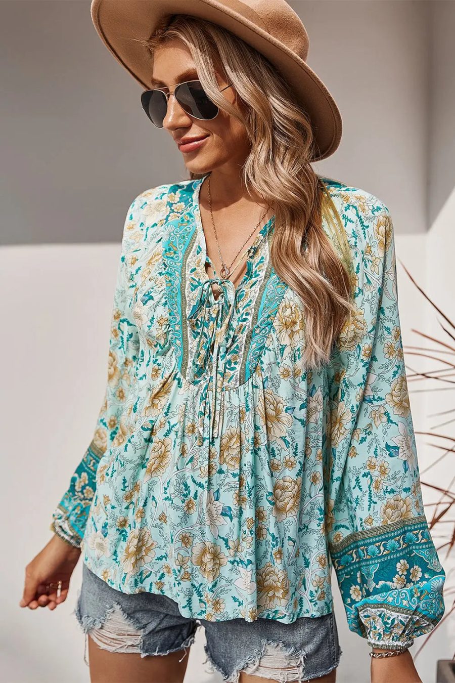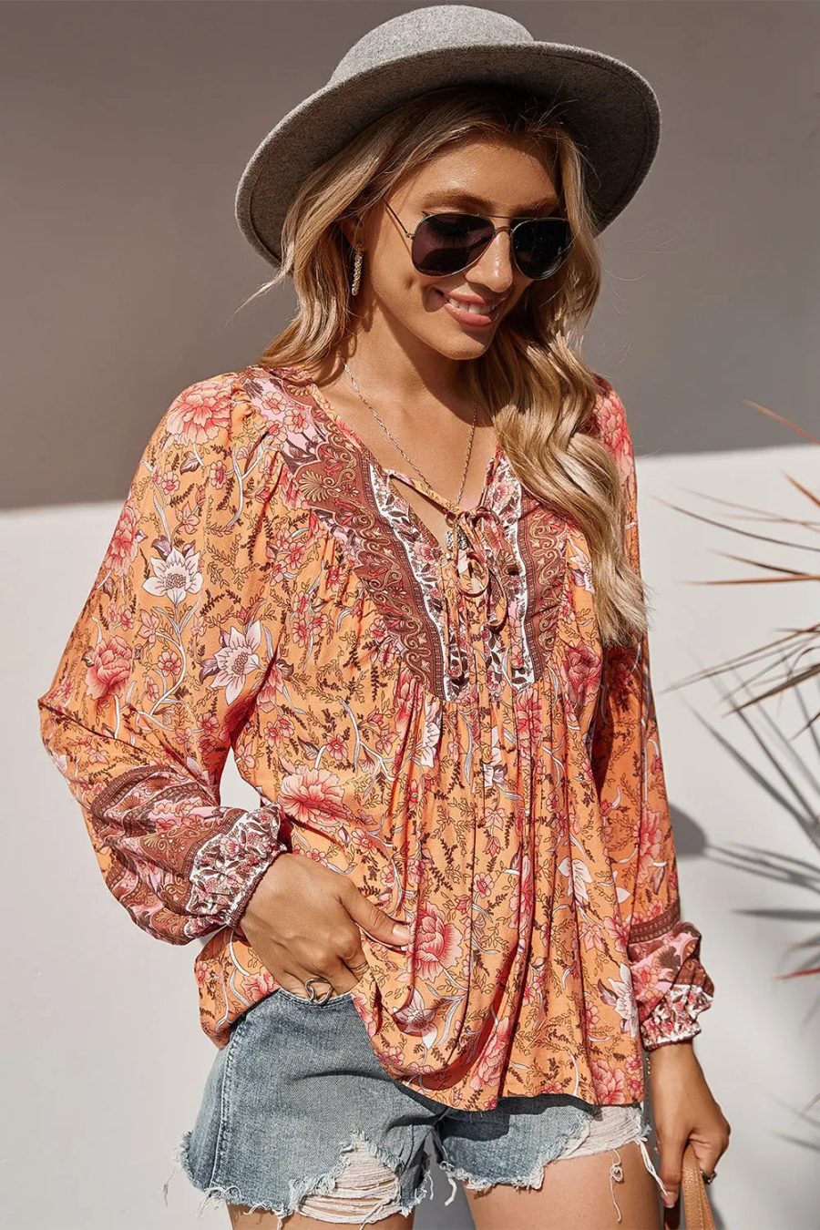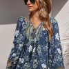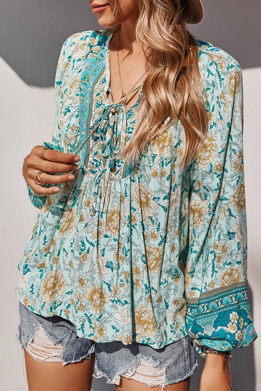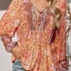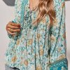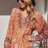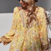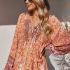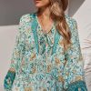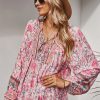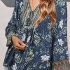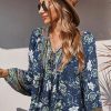 Tie V Neck Long Sleeve Babydoll Peplum Tops