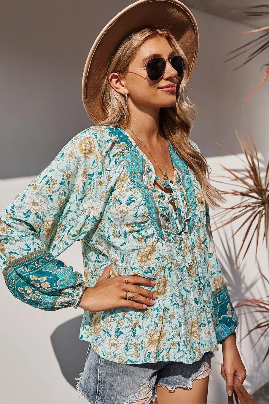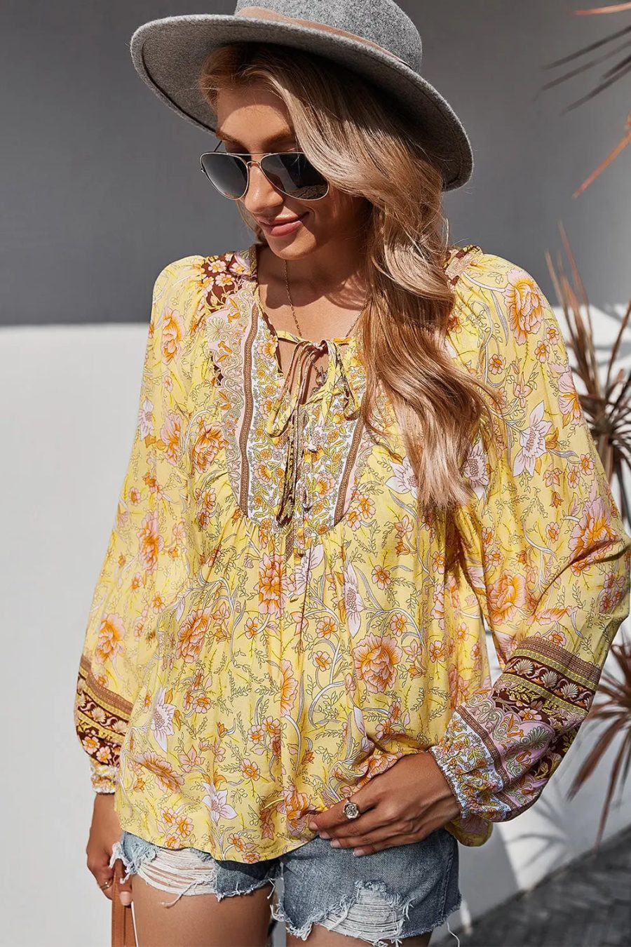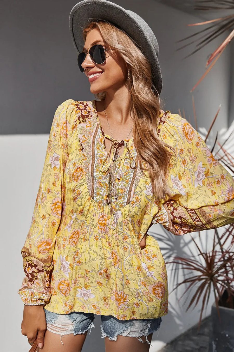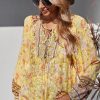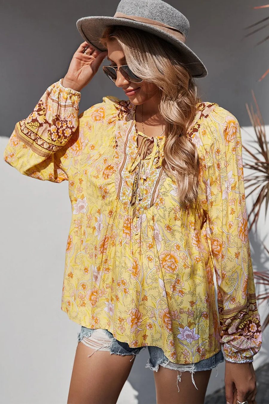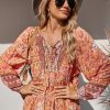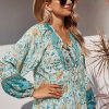 Tie V Neck Long Sleeve Babydoll Peplum Tops