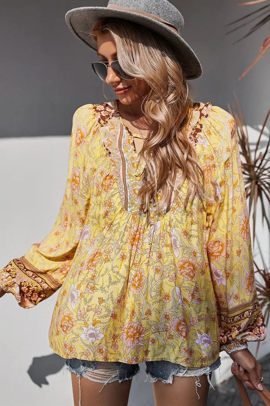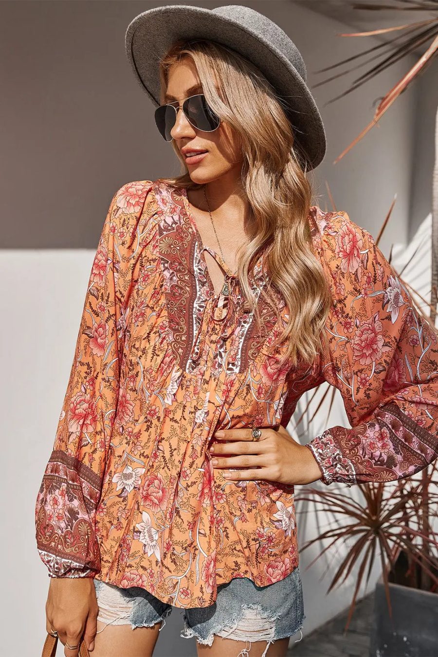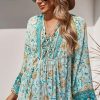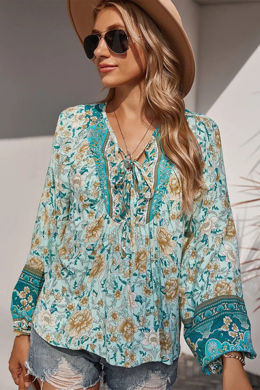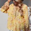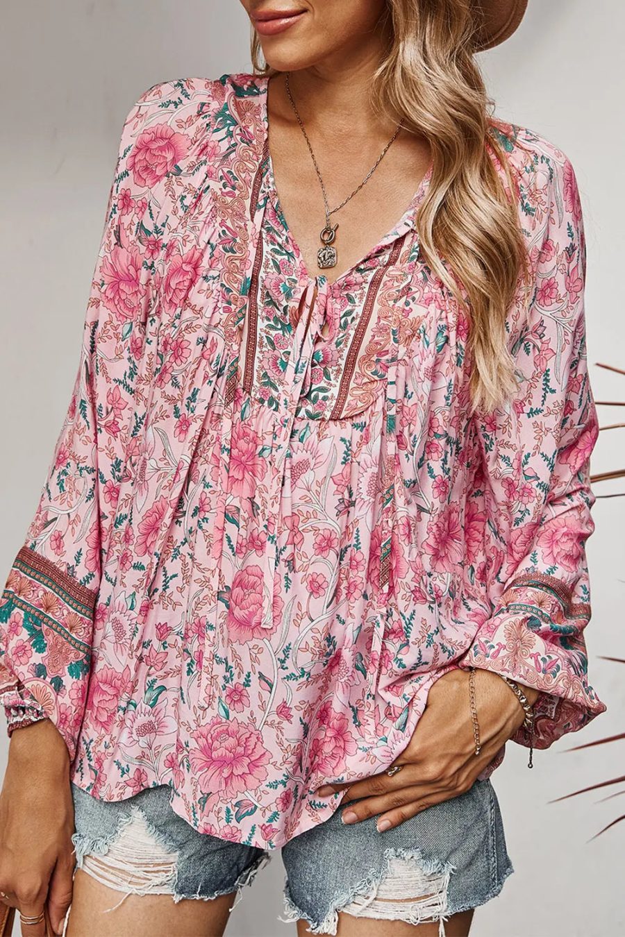 Tie V Neck Long Sleeve Babydoll Peplum Tops