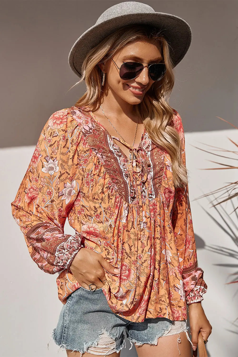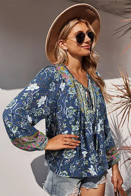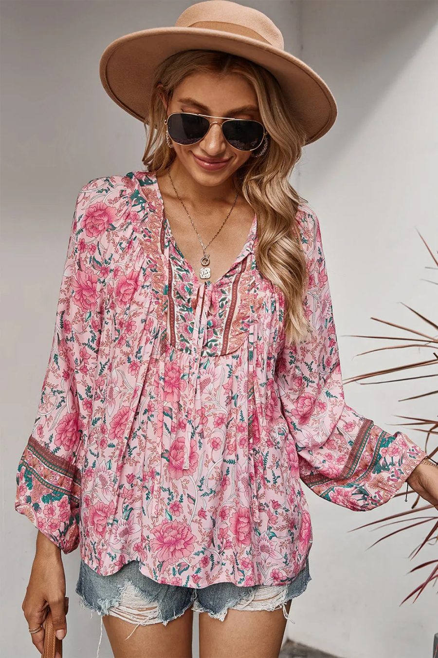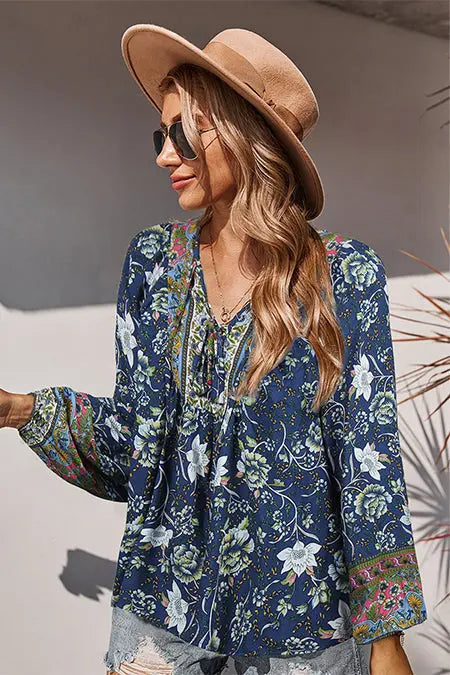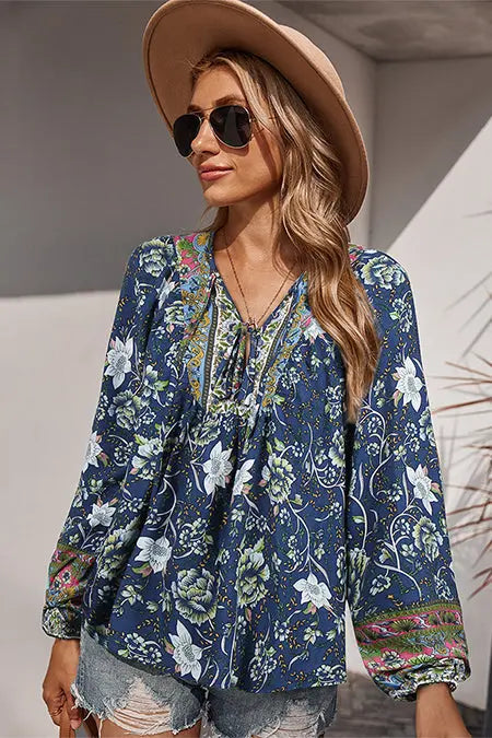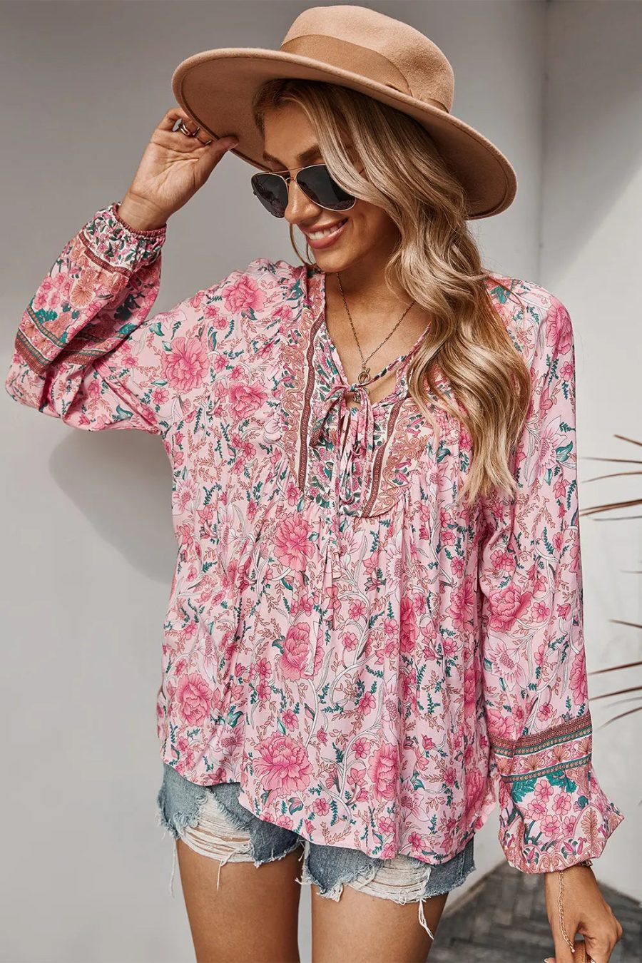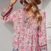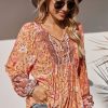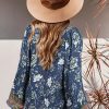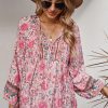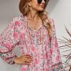 Tie V Neck Long Sleeve Babydoll Peplum Tops quantity