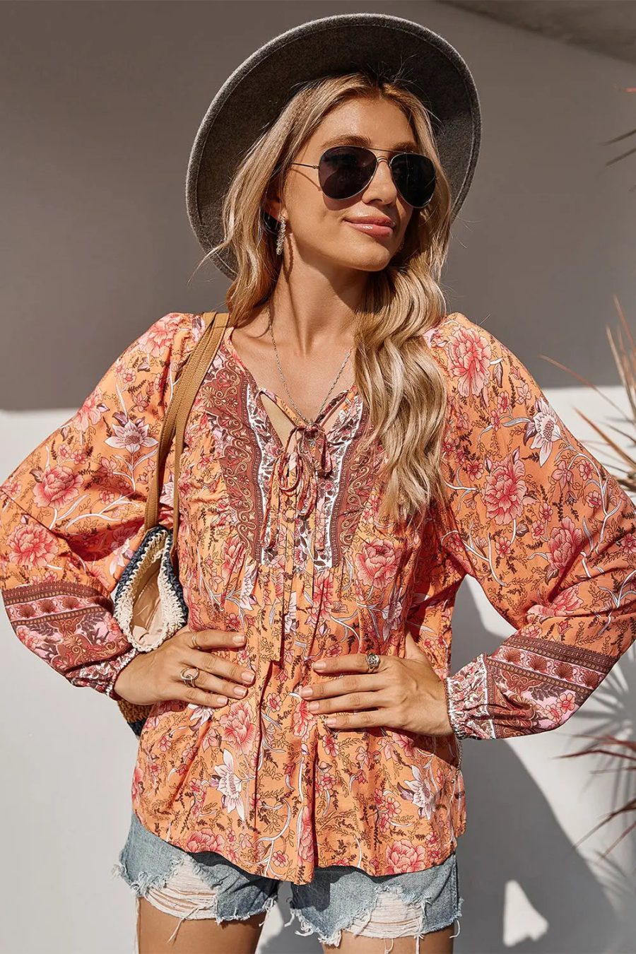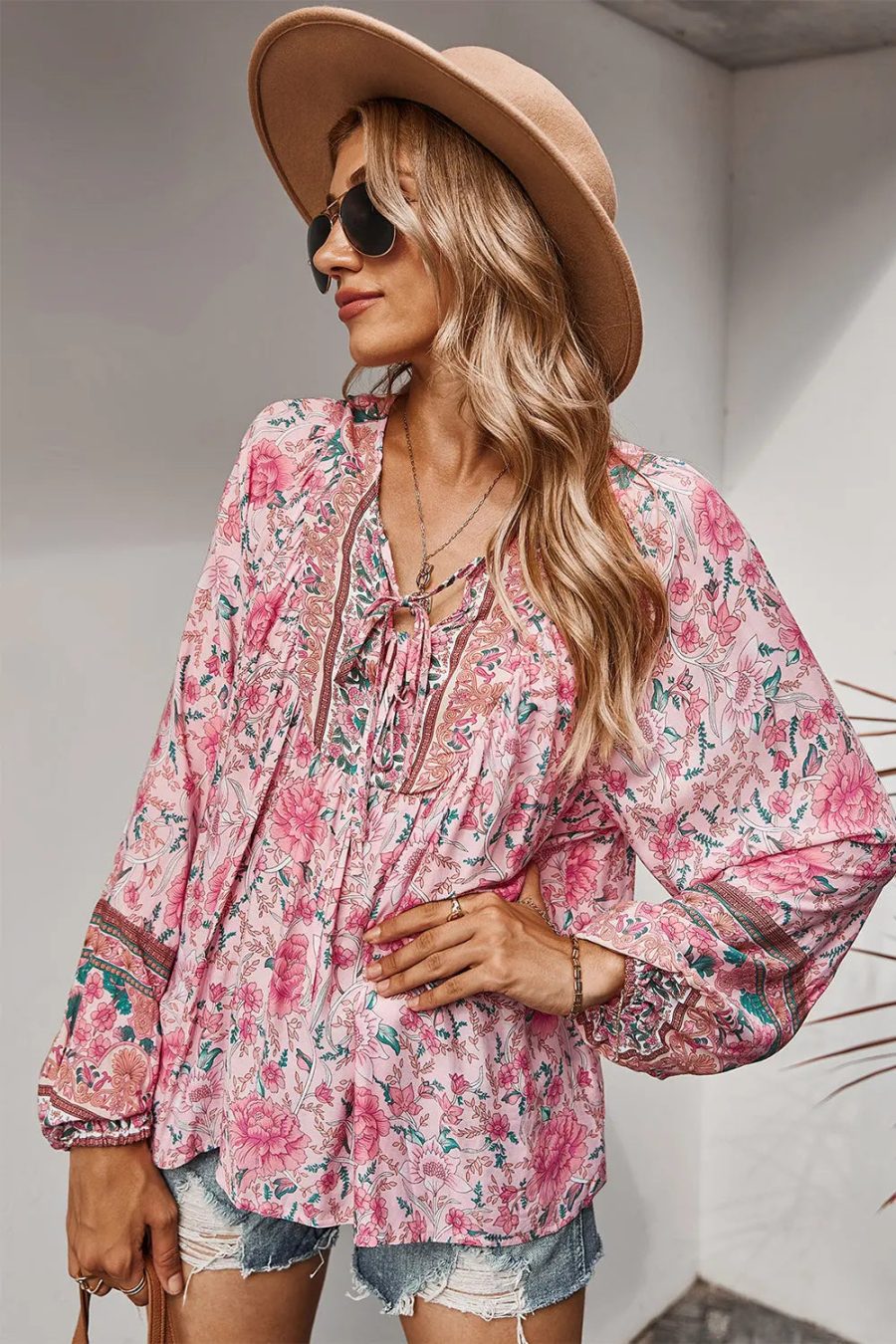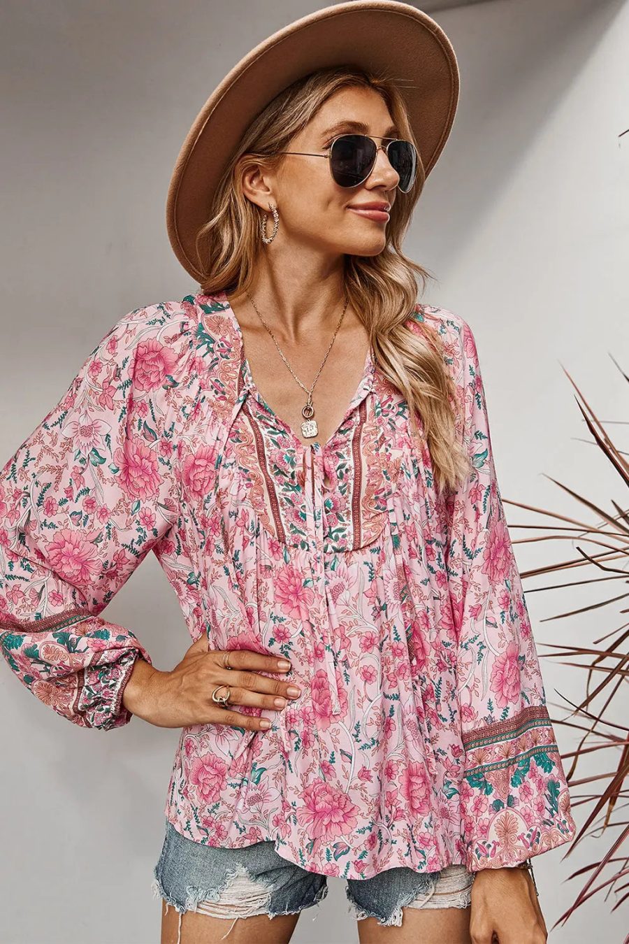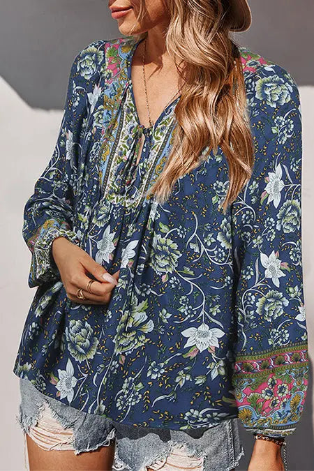 Tie V Neck Long Sleeve Babydoll Peplum Tops quantity