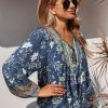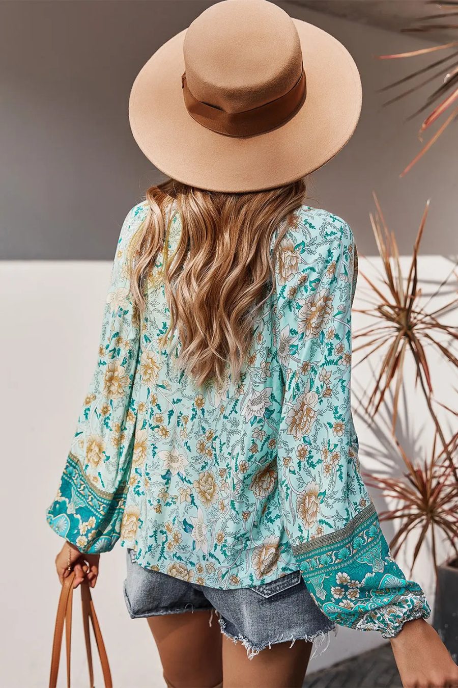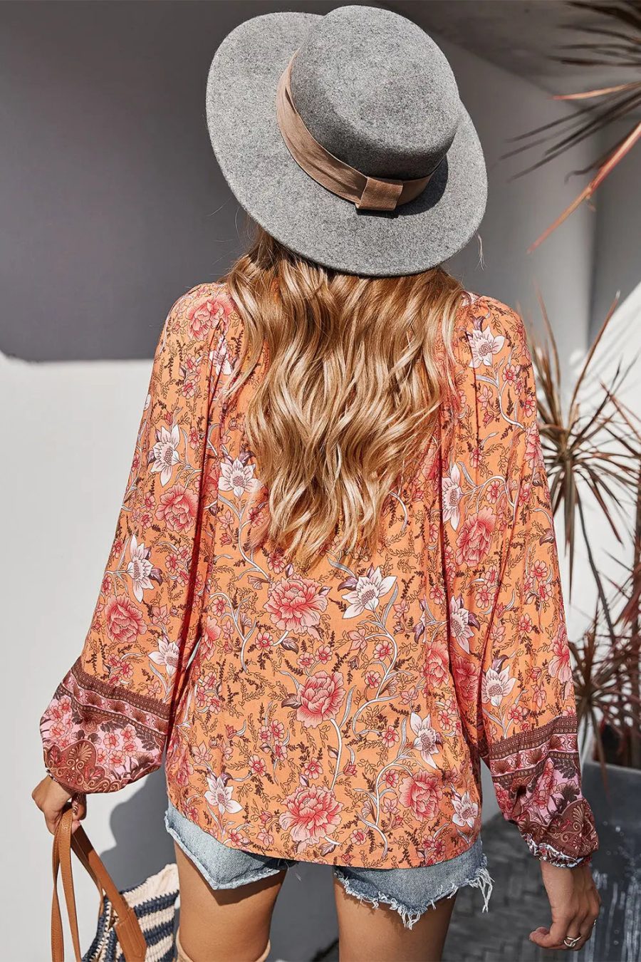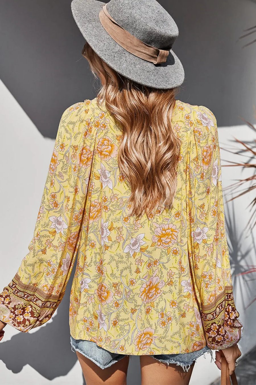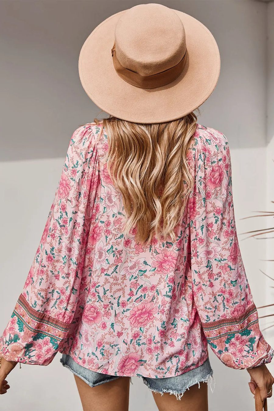 Tie V Neck Long Sleeve Babydoll Peplum Tops quantity