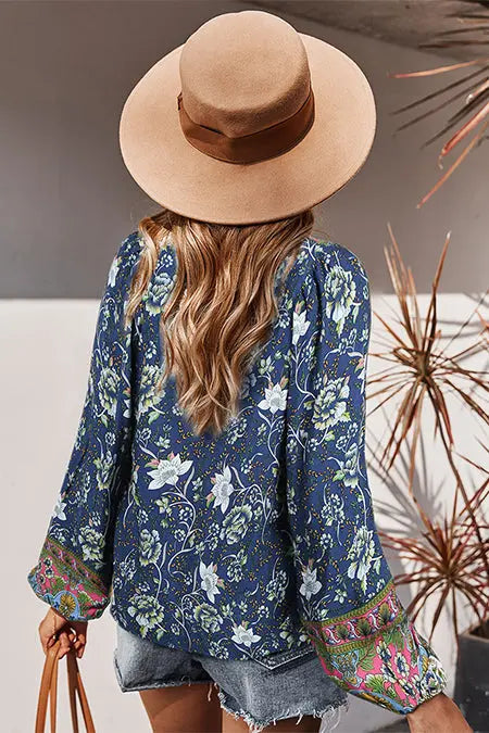 Mock Neck Colorful Floral Short Sleeve Top
