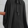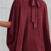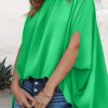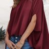 Loosemaxiskirt Mock Neck Ruffle Strappy Back Oversized Satin Blouse