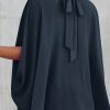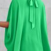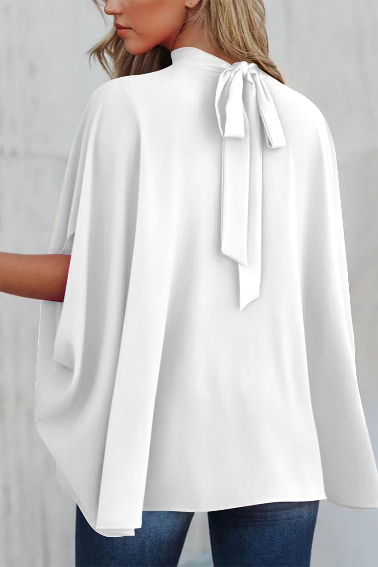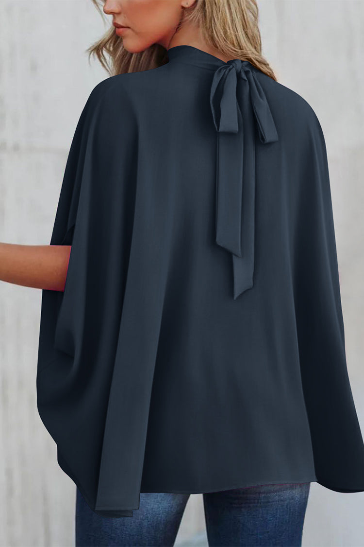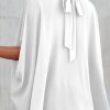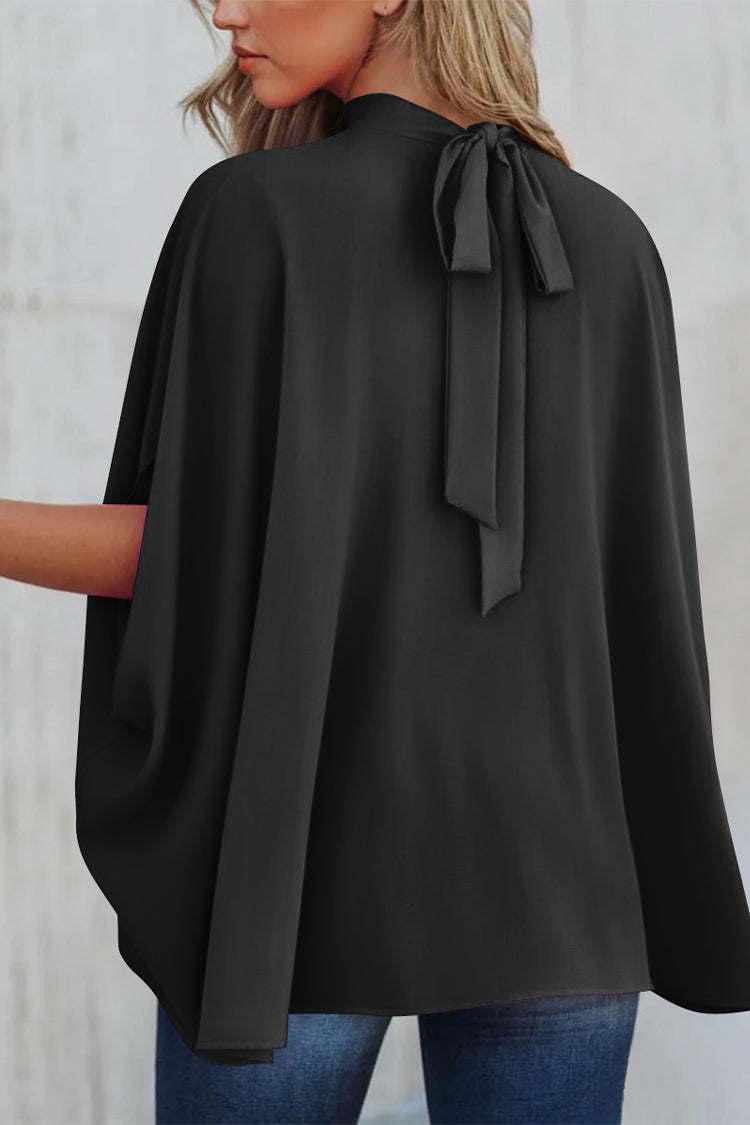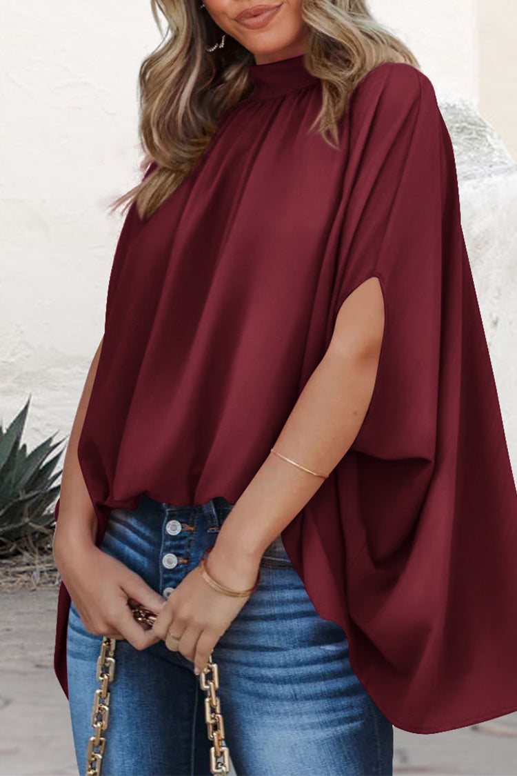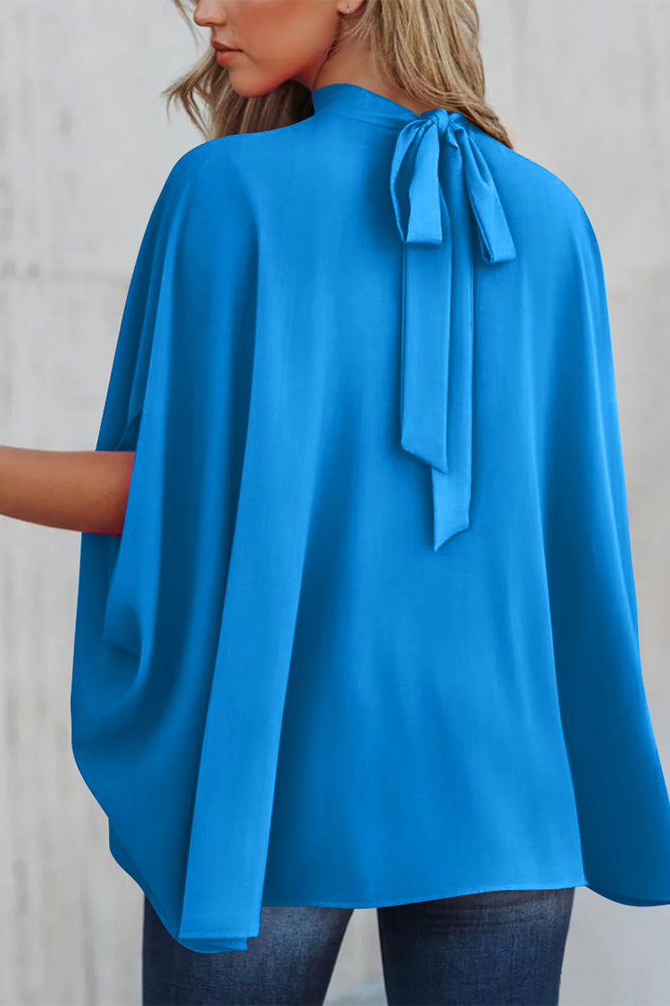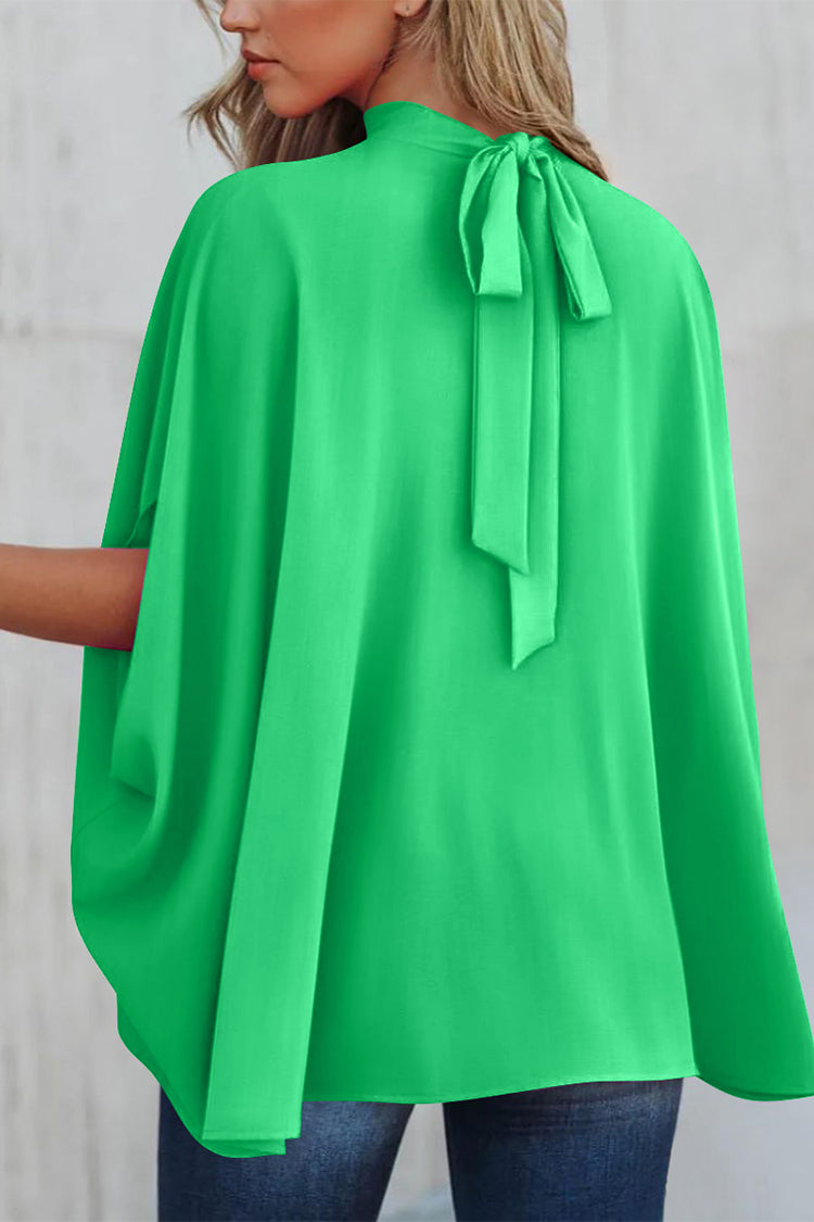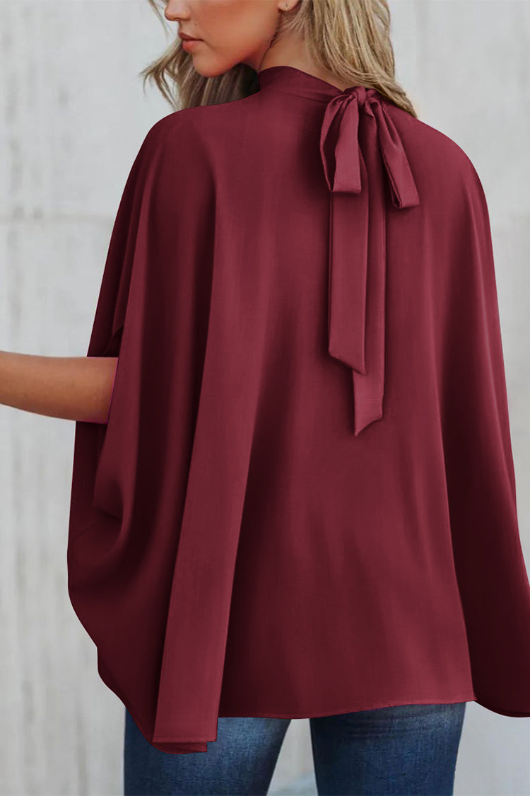 Loosemaxiskirt Mock Neck Ruffle Strappy Back Oversized Satin Blouse quantity