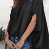 V Neck Tunic Loose Fit Side Slit Ribbed Knit Oversized Blouses