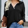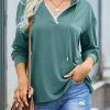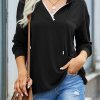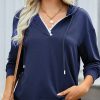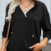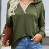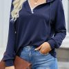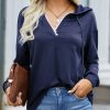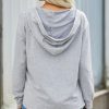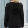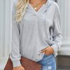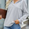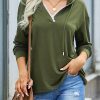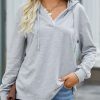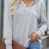 Casual Drawstring Lace V Neck Solid Color Pullover Sweatshirts