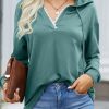 - This long sleeve tunic tops adopts lace stitching v-neck design,which is fashion and beautiful.V neck with fashion hooded design reveal the collarbone, refreshing and simple with a little sexy.Loose fitting style can hide the flesh of the waist.