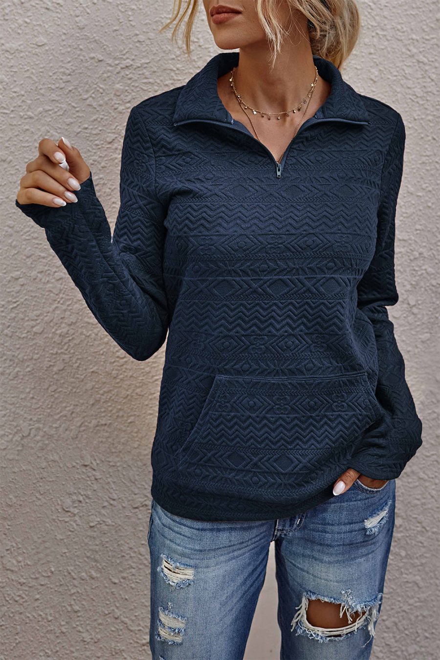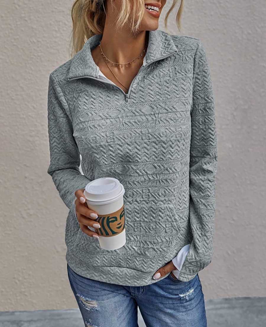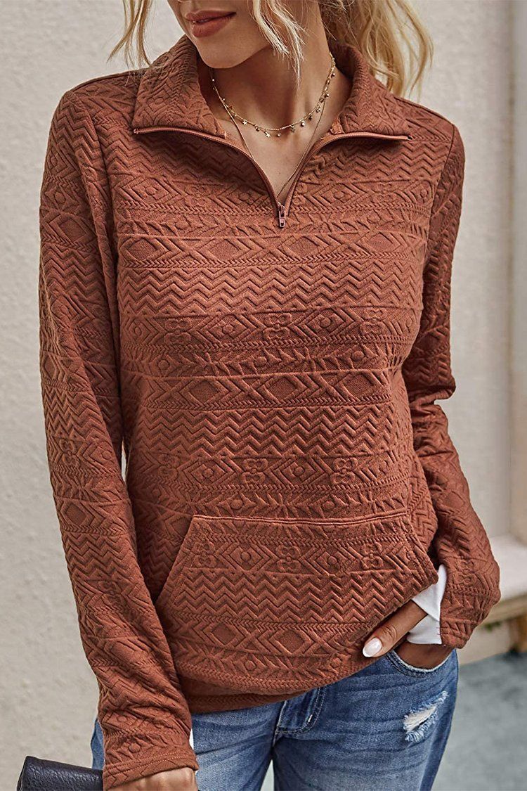 Quilted Pattern Quarter Zip Loose Sweatshirt with Pocket quantity