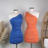 The Goddess Ruched One Shoulder Mini Dress in More Colors quantity