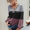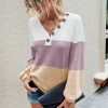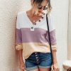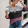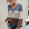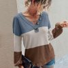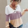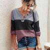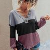 V Neck Button Raglan Sleeves Striped Blouse