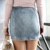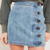 This cute denim mini skirt in a medium wash features side buttons. Wear this with a tshirt or a long sleeve for a casual and cute look!