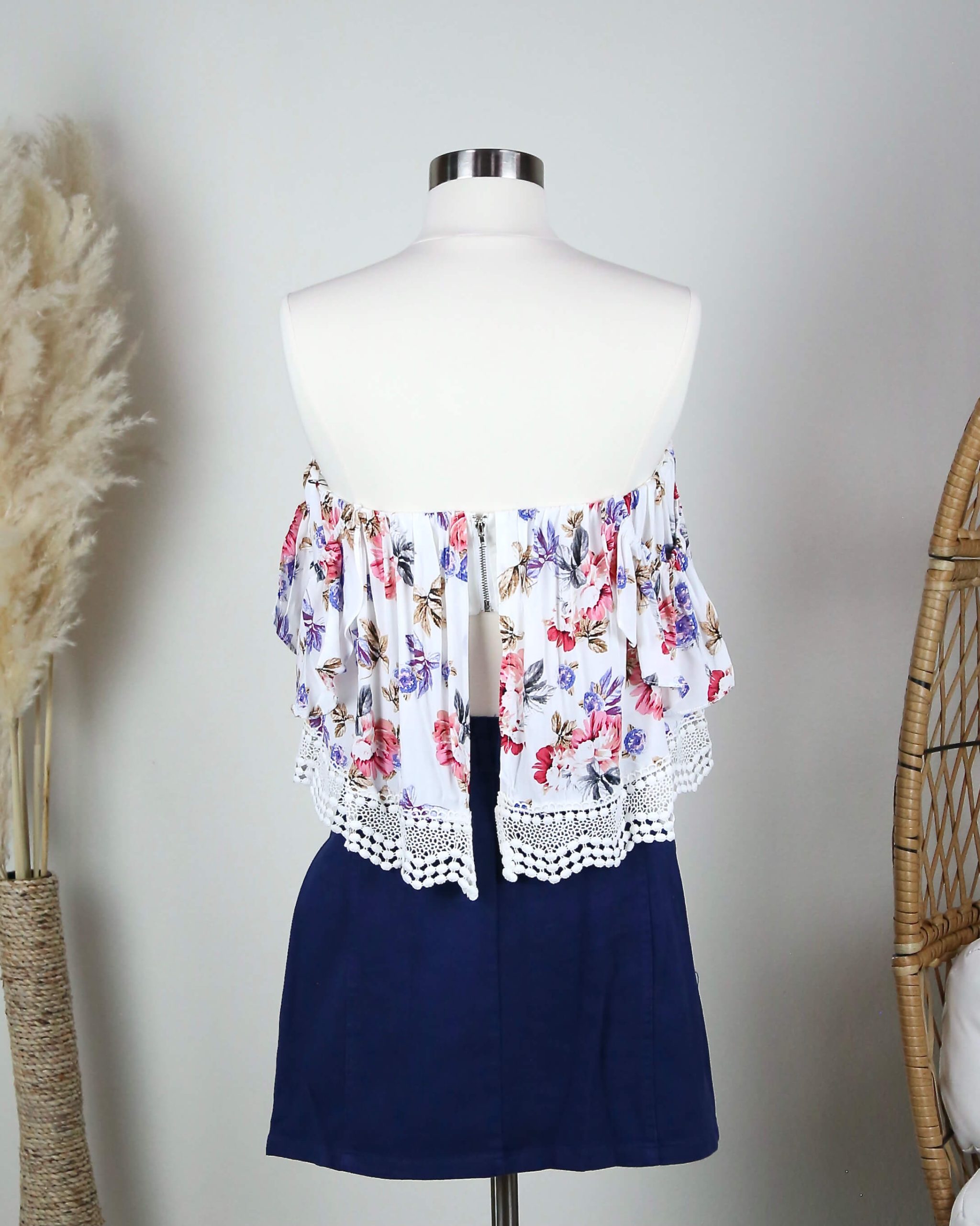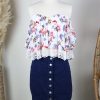 This woven side button up denim mini skirt is a must-have! Pair this with your favorite off-the-shoulder top for a cute everyday look!